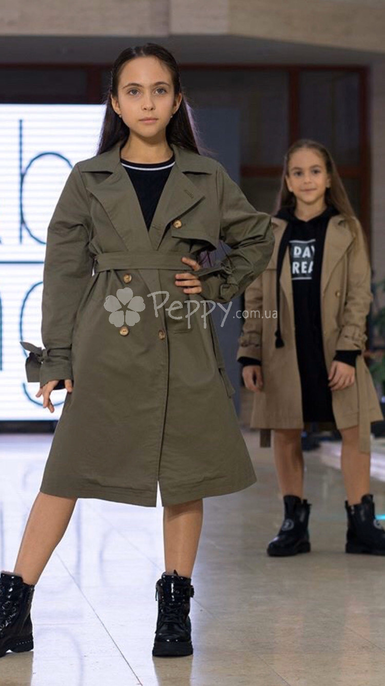 НОВИНКА! Неймоверно стильный плащ для девочки из новой коллекции Праздник Весна Baby Angel 2021. Отлично сочетается с брюками и юбками, платьями и сарафанами. Застежка на пуговицах в 2 ряда. Декоративная отделка - пояс, завязки на рукавах, кокетка и распорка сзади. Цвет: оливковый. Состав: 80% хлопок 20% полиестер. Производство Украина
