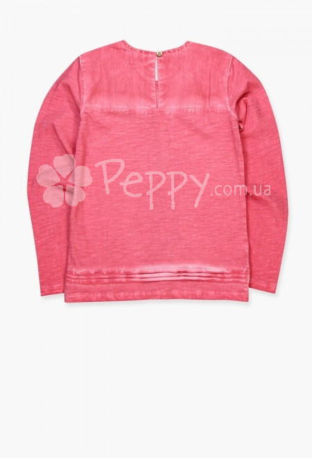 Стильный реглан для девочки из новой коллекции Boboli осень 2018. Декоративная отделка – принт, вываренная ткань, складки внизу. Цвет: розовый с малиновым отливом. Состав: 100% хлопок. Производство Испании.