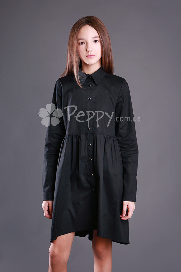 НОВИНКА! Стильное платье-рубашка для девочки из новой коллекции Mone осень 2020. Декоративная отделка - воротник, термокамни. Цвет: черный. Состав: 5% вискоза, 90% хлопок, 5% лайкра. Производство Украина.