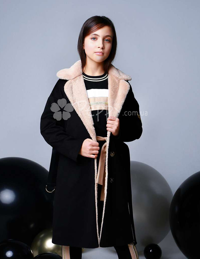НОВИНКА! Кашемировое пальто для девочки из новой коллекции Mone осень 2020-21. Стильное, удобное и комфортное. Застежка на кнопках, под пояс, спущенный рукав, карманы в боковых швах, меховый воротник и отвороты. Декоративная отделка - меховый воротник, пояс, кармашки. Цвет: черный, беж. Состав: 50% кашемир, 50% шерсть, мех -100% полиамид, подкладка -100% полиамид. Производство Украина