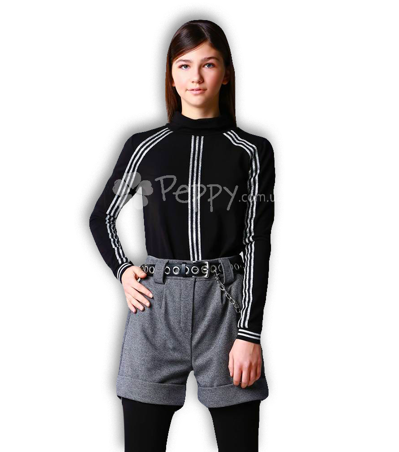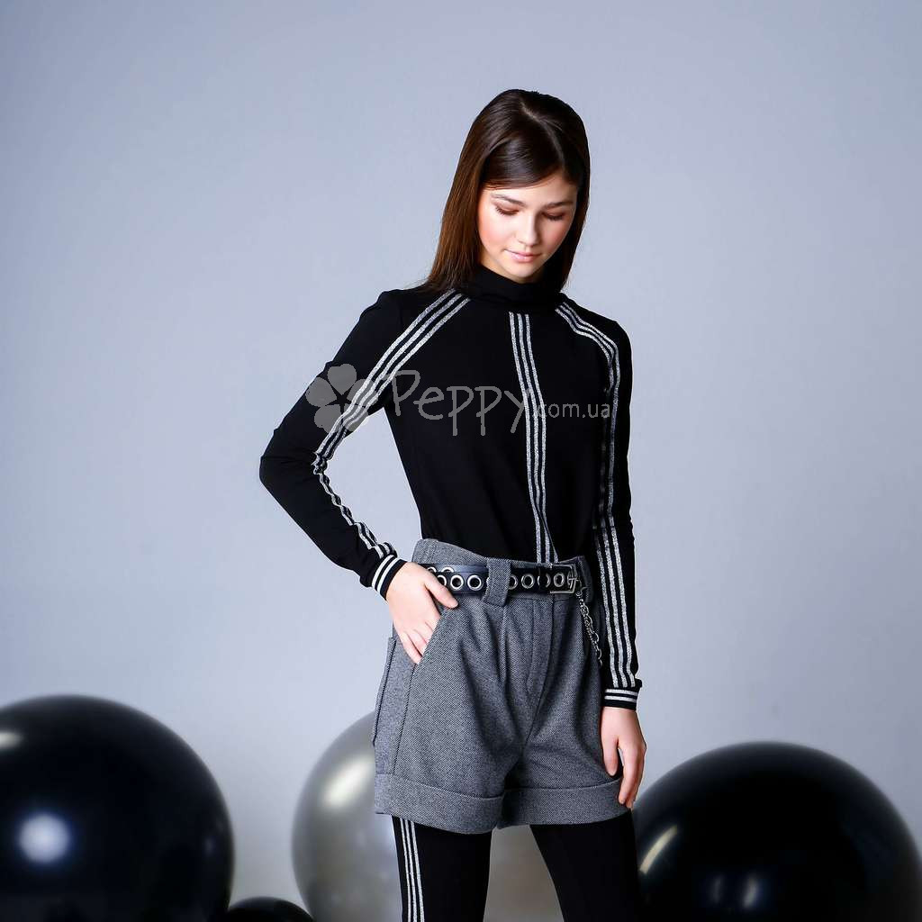 НОВИНКА! Стильный гольф для девочки из новой осенней коллекции Mone осень 2020. Комфортный и приятный к телу, исполнен из трикотажа. Декоративная отделка - манжет, серебряная полоска. Цвет: черный, серебро. Состав: 5% лайкра, 5% вискоза, 90% хлопок.