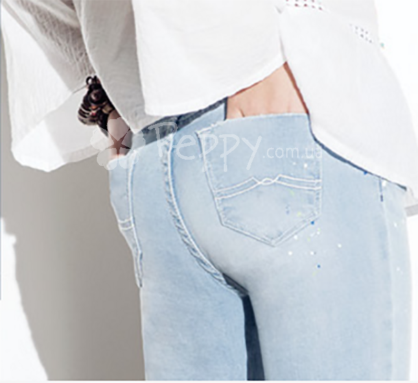 Модные джинсы для девочки из новой коллекции Tiffosi весна 2017. Пояс регулируется внутреней резинкой, покрой JEANS SKINNY FIT. Декоративная отделка – вышивка, потертости, бахроми, принт. Цвет: голубой. Состав: 98% хлопок, 2% эластан. Произведено в Португалии.