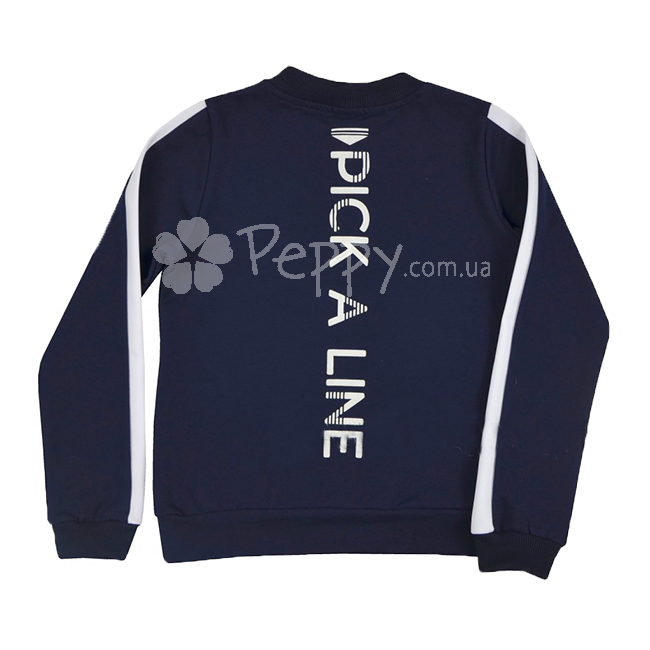 НОВИНКА! Спортивний костюм для дівчинки з колекції Atut осінь 2019. Застибка на блискавці, рукави ти штанини внизу на манжеті. Декоративне оздоблення – принт на спинці, білий лампас. Колір: темно синій. Склад: 95% бавовна, 5% еластан. Виробництва Польща.