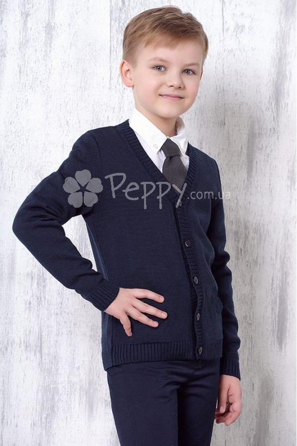 НОВИНКА! Классичний кардиган на гудзиках для хлопчика з нової коллекції Dr.Kid весна 2017. Підійде для школи та урочистих подій. Колір:темно синій. Склад: 100% бавовна. Виготовлено в Португалії.