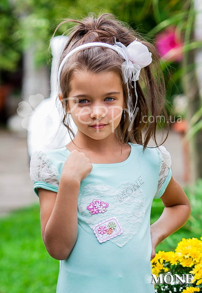 НОВИНКА! Футбока з нової коллекції Mone весна 2014 для дівчинки. Декоративне оздоблення - мереживо. Колір: ніжно салатовий. Склад: 90% бавовна, 5% віскоза, 5% лайкра