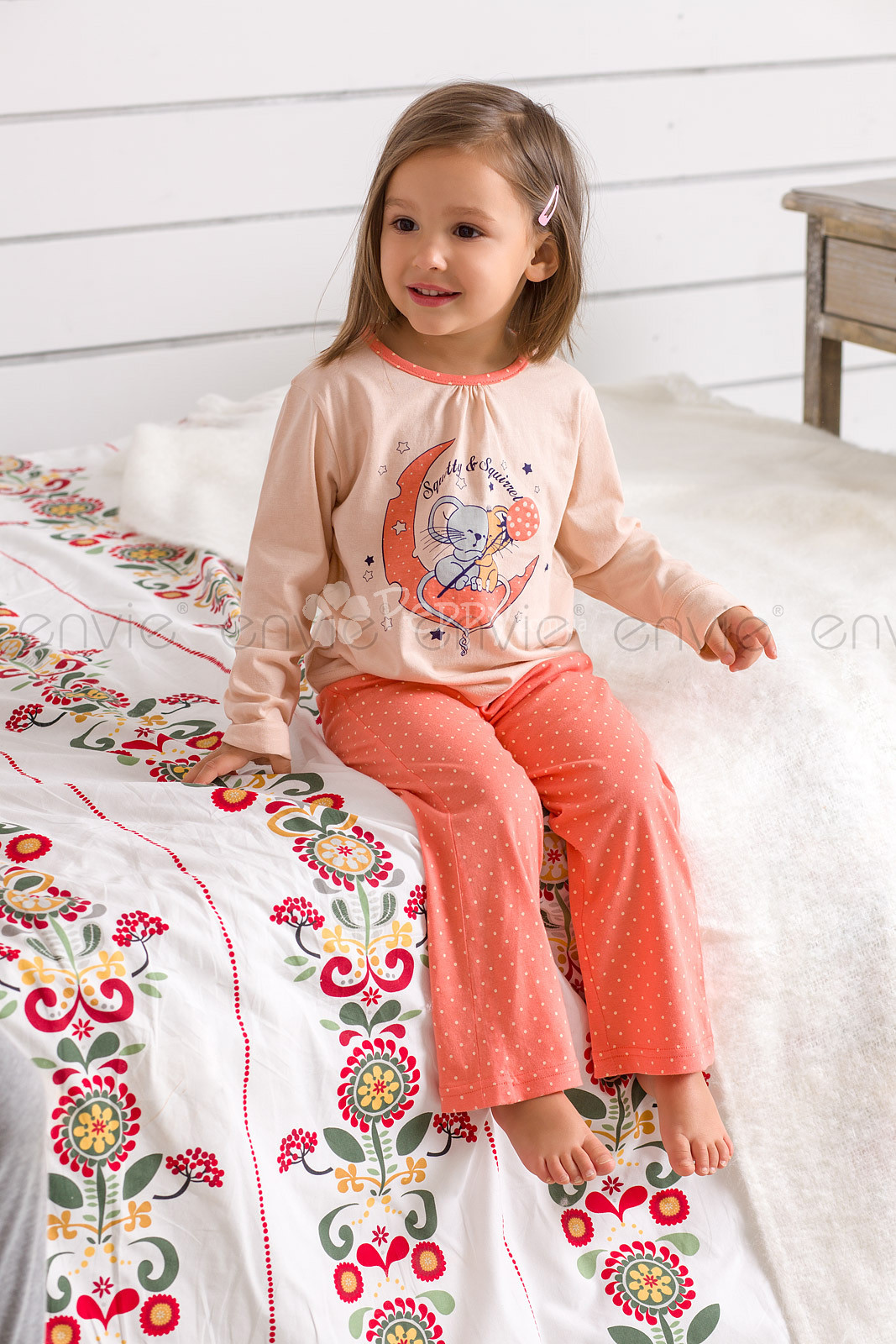 НОВИНКА! Піжама для дівчинки. Зручна для дитини, м`яка и приємна до тіла. Серія ENVIE Декоративне оздоблення - принт. персик, помаранча. Склад: 100% бавовна. Розміри половинки, та повністю відповідає зросту дитини.