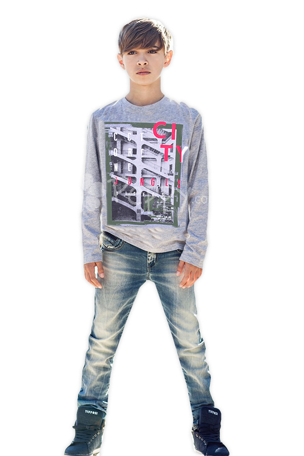НОВИНКА! Стильний реглан для хлопчика з нової коллекції Tiffosi осінь 2018. Декоративне оздоблення - принт. Колір: сірий меланж. Склад: 100% бавовна. Виробництво Португалія.